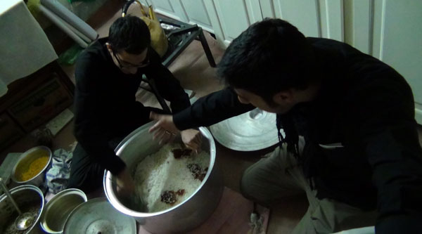 به توفیق الهی هرشب برنامه پذیرایی شام برقرار بود که با استفاده از ظرفیت های خود هیئت آماده و پخته میشد.