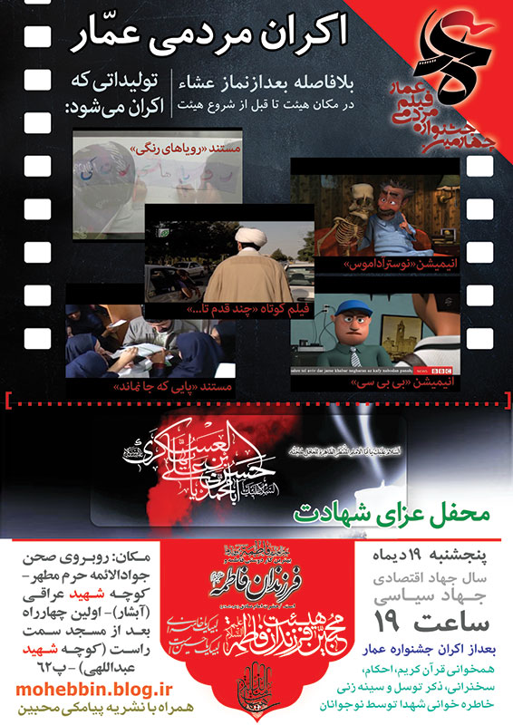 این خیلی خوبه که نوای لبیک به "أینَ عمّار" رهبر، در سراسر کشور به گوش میرسه....! هر کس به وسع خودش...! هیات ما هم به اندازه خودش در این حرکت سهیم است! یک "أین عمّار" او با قلب ها چکار کرد؟؟؟ حکم جهاد دهد چه میشود.....!؟؟؟؟؟ یابن العسگری شاهد باش که اگر مرید این سید هستیم، به عشق توست!