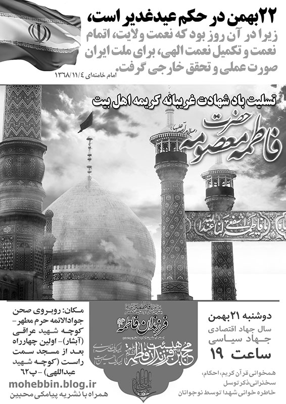 اطلاعیه شهادت حضرت معصومه سلام الله علیها